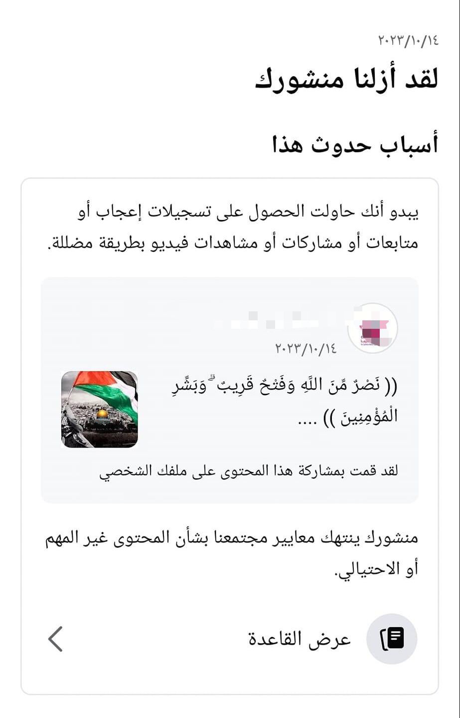 في ضوء ما ذكر وبعد التوبيخ الأوروبي، أعلنت "ميتا" أنّها اتّخذت خطوات لإزالة محتوى يتضمّن إشادات ودعماً كبيراً لحركة حماس من منصاتها.