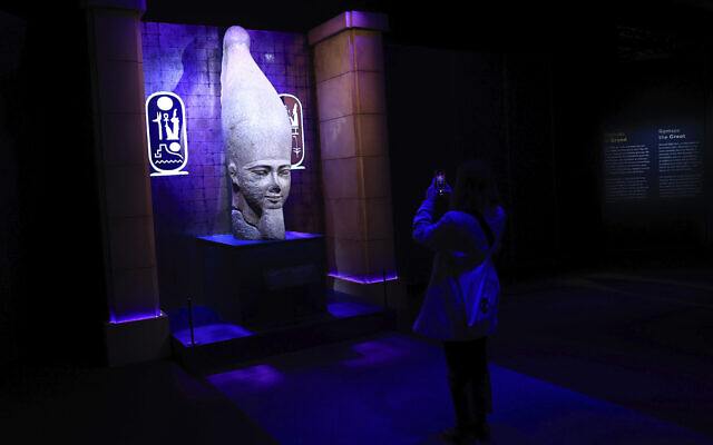 (صحافيّ في معرض باريس يلتقط صورة للرأس الحجريّ الذي يجسّد رمسيس الثاني - أب)