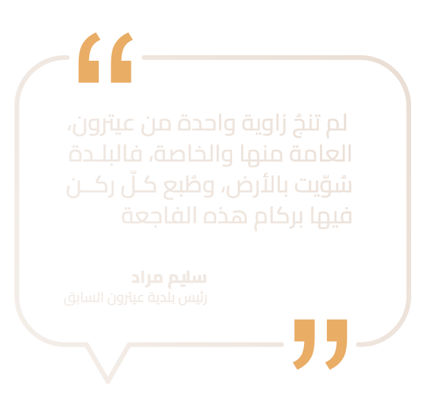 لم يقتصر مشهد الخراب في عيترون على المنازل وحدها، بل تمدّد ليطال كلّ ما شكّل نسيج الحياة في البلدة؛ فلم تسلم المرافق العامة، من دور العبادة إلى المستوصفات الصحية، مروراً بالمولدات الكهربائية ومعمل الأجبان والألبان، من الدمار.