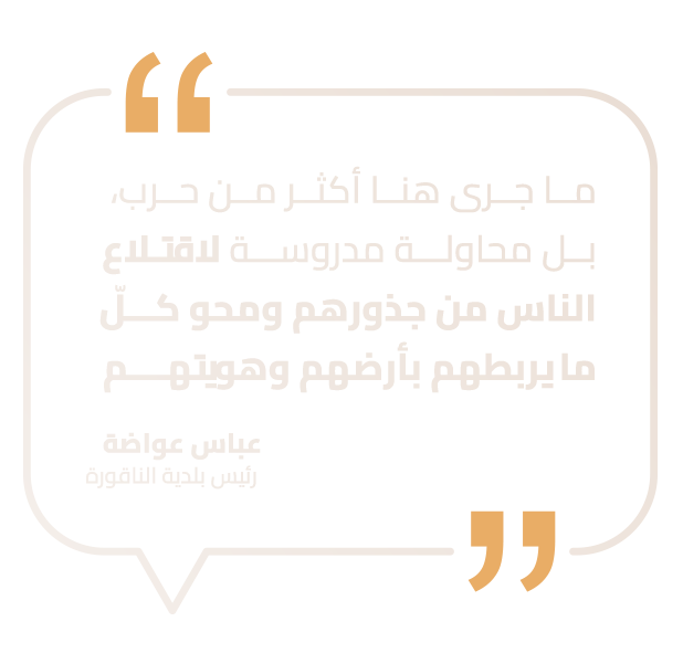 على أبواب الناقورة، يمتدّ المشهد لوحة خراب واسعة. ثمة بيوت متصدّعة، جدران مثقوبة بالقذائف، طرُق تحولّت إلى أخاديد ترابية. "تدمير شامل لمقومات الحياة"... بهذه العبارة يختصر عباس عواضة، رئيس بلدية الناقورة، ما حلّ بالبلدة تحت العدوان الإسرائيلي. فالمشهد ليس مجرد دمار عمراني، إنما خطة ممنهجة اقتلعت البيوت والبساتين والبنى التحتية، وتركت خلفها أرضاً خاوية وذكريات ممزقة.