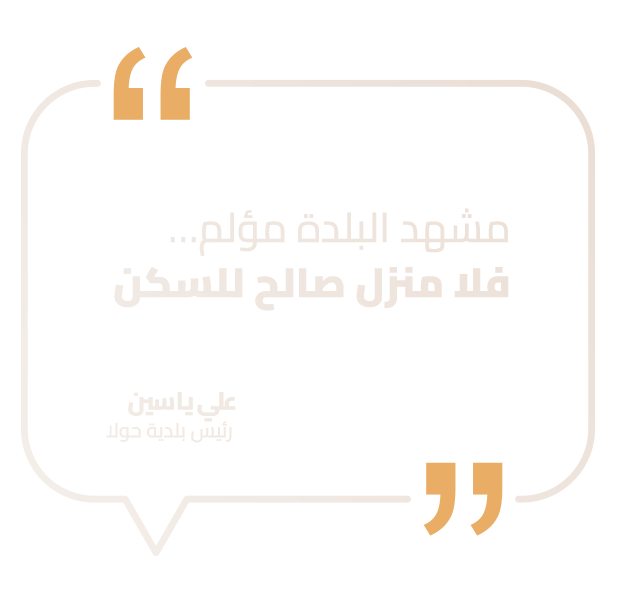 تبدو بلدة حولا خارجة من زلزال قويّ، إذ طاول الدمار أكثر من 75 في المئة من مبانيها، أي ما يعادل من 500 وحدة سكنيّة إلى 600 وحدة دُمّرت بالكامل، بينما تحتاج نسبة الـ 25 في المئة الباقية إلى ترميم، لأنها تضررت نتيجة حرقها.