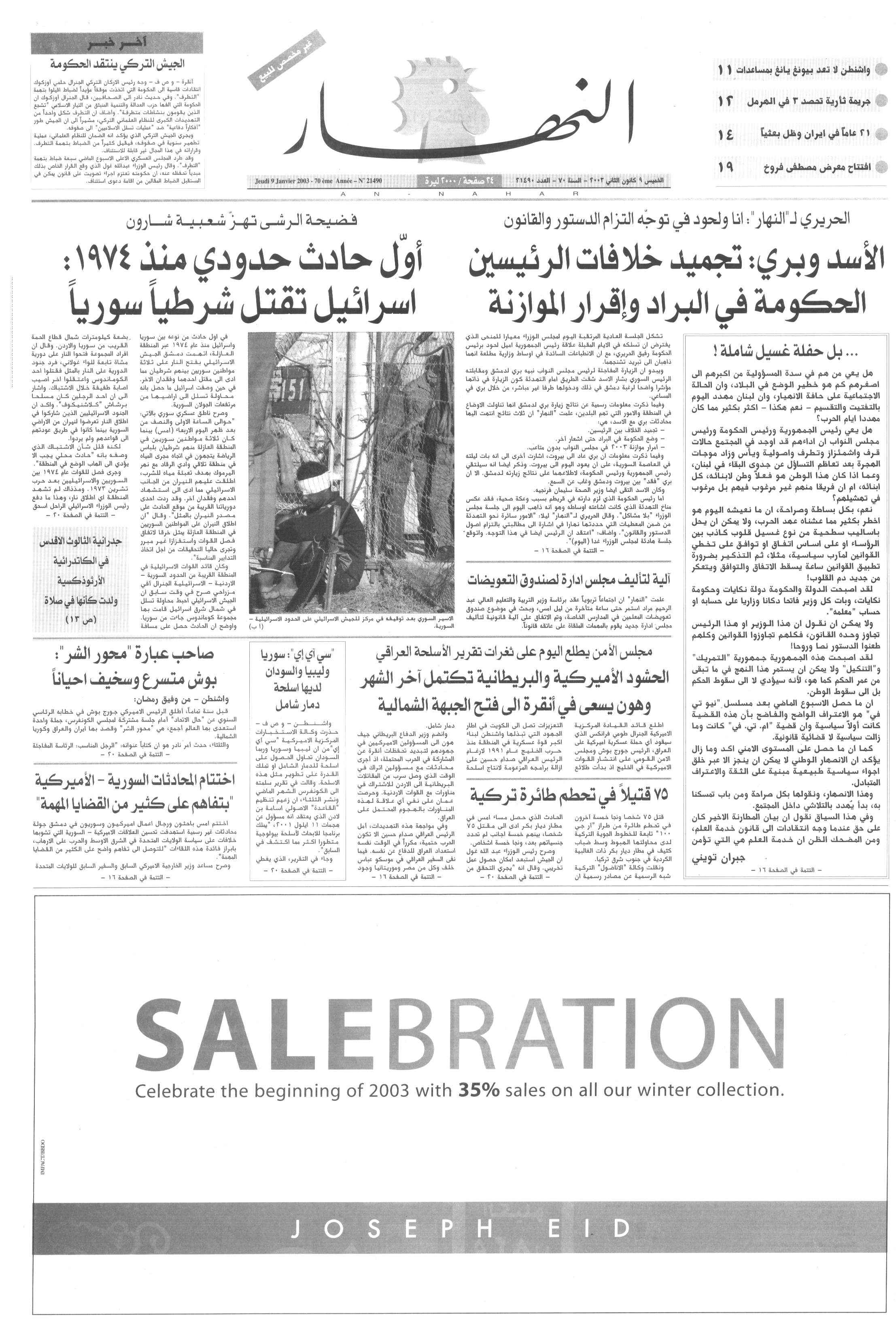 اليس السيد نصرالله رجل دين محترماً؟ فعيب وألف عيب ان تعتمد سياسة المكيالين في التعامل مع رجال الدين زمن افلاس رجال السياسة. … الا اذا كانت “مشكلة” البطريرك صفير وربما “مشكلة” المطران عوده اللذين يعبّران عن مشاعر المواطنين انهما رجلا دين بلا سلاح، بلا ميليشيا!!! لن نطيل في هذا الموضوع على امل ان يعود الحوار بين بكركي وأهل الحكم، مع العلم ان الحوار حتى داخل اهل الحكم اصبح شبه مقطوع اليوم.