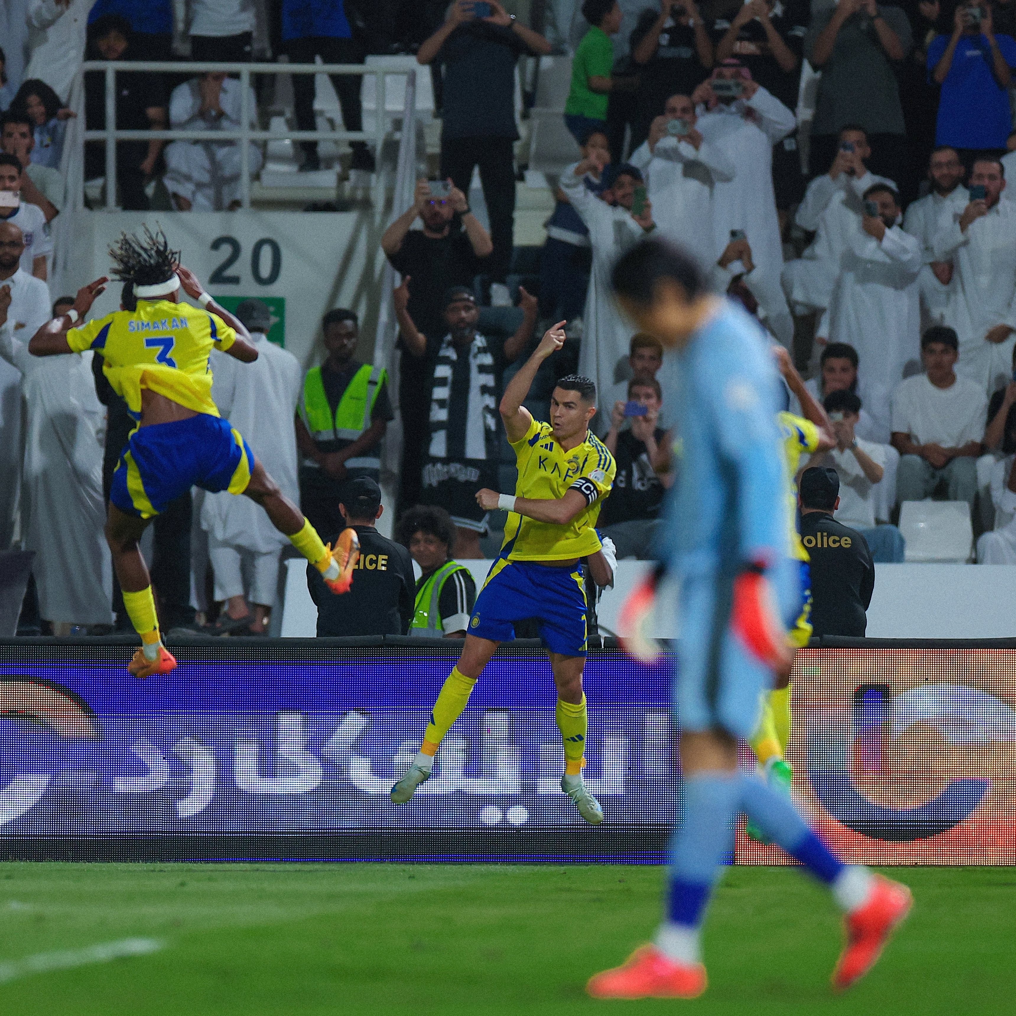 وكان النصر البادئ بالتسجيل عبر مدافعه الإسباني أيمريك لابورت (69)، وأدرك الشباب التعادل بالنيران الصديقة عندما سجل علي الحسن بالخطأ في مرمى فريقه (90)، لكن رونالدو خطف هدف الفوز من ركلة جزاء (90+7).