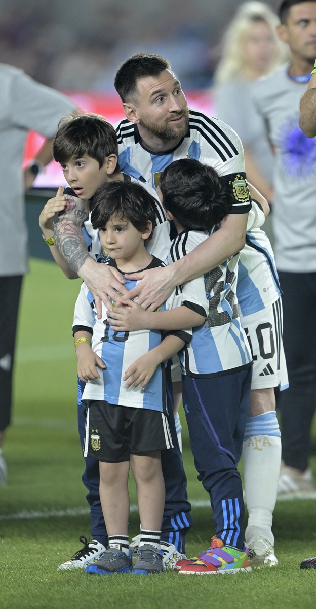 ليونيل ميسي مع عائلته. (أ ف ب)