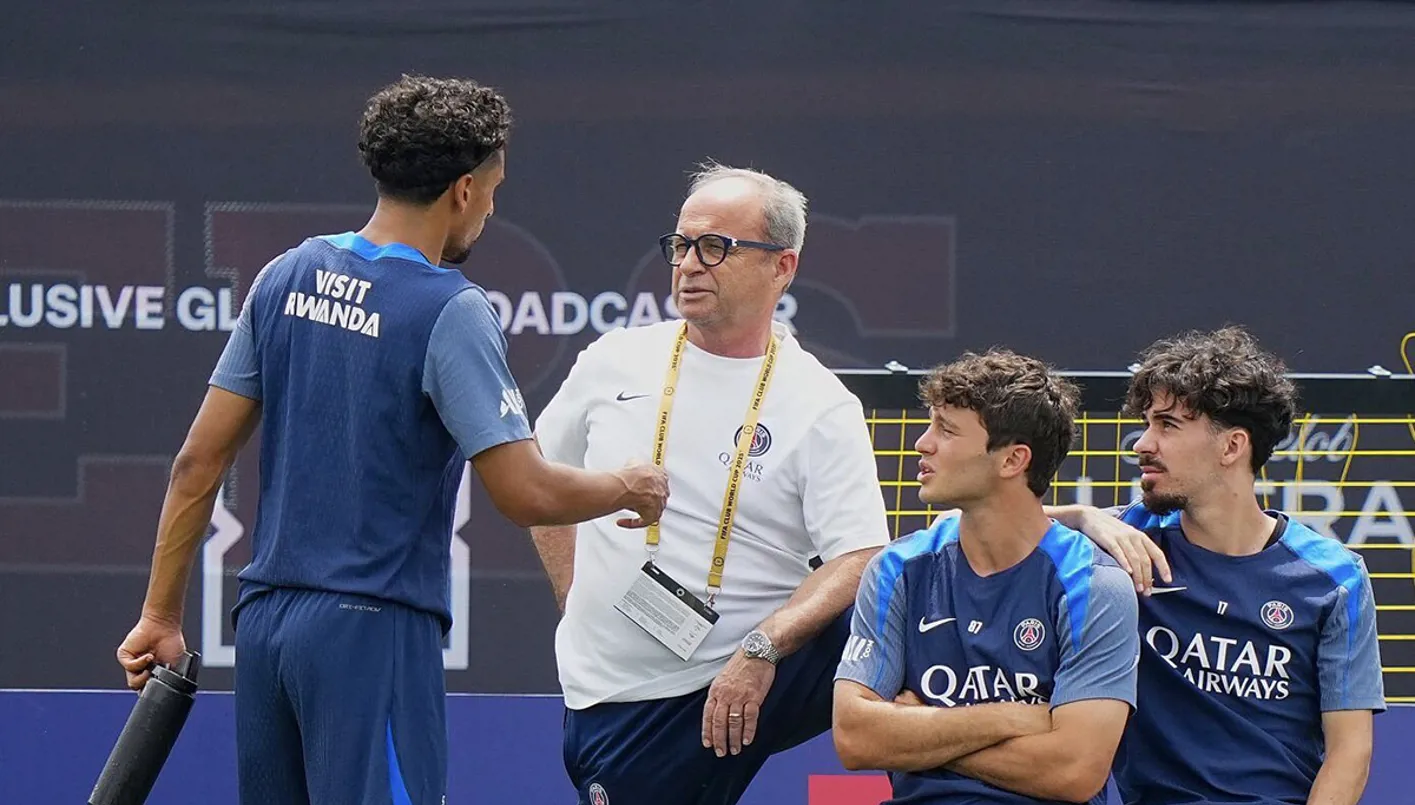 لويس كامبوس مع لاعبي باريس سان جيرمان .(إكس)
