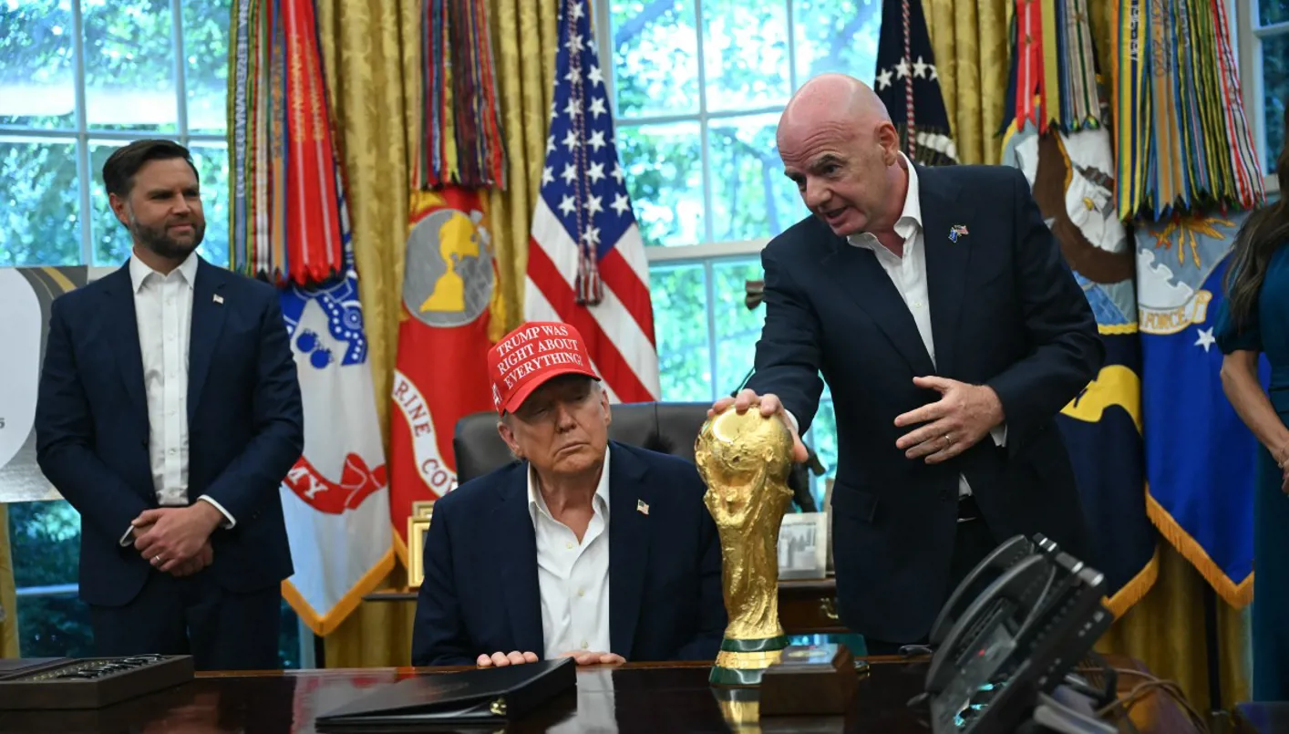 قال ترامب، جالساً في المكتب البيضوي إلى جانب رئيس الاتحاد الدولي للعبة (فيفا) السويسري جاني إنفانتينو، وهو يمسك كأس العالم بين يديه واضعاً على رأسه قبعة حمراء تحمل الشعار: "ترامب كان محقاً في كل شيء": "إنّه "من المحتمل أن يكون هذا أكبر حدث رياضي".