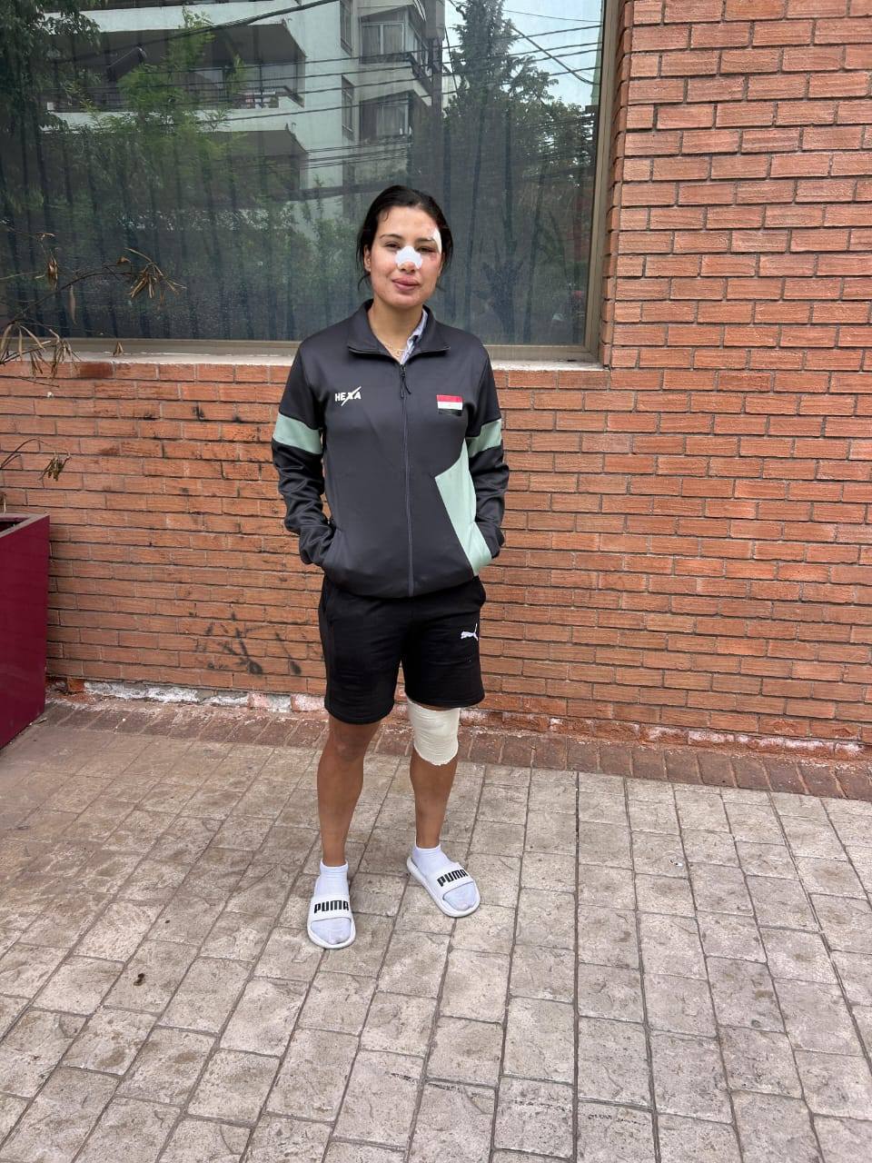 وأوضح مدرب منتخب مصر محمد إبراهيم أن اللاعبة أصيبت بـ كدمات وسحجات في الكتف الأيسر والظهر والركبة، إضافة إلى جرح كبير في الجبهة اليسرى، مؤكداً أن حالَتها الصحية مستقرة رغم قوة الإصابة.