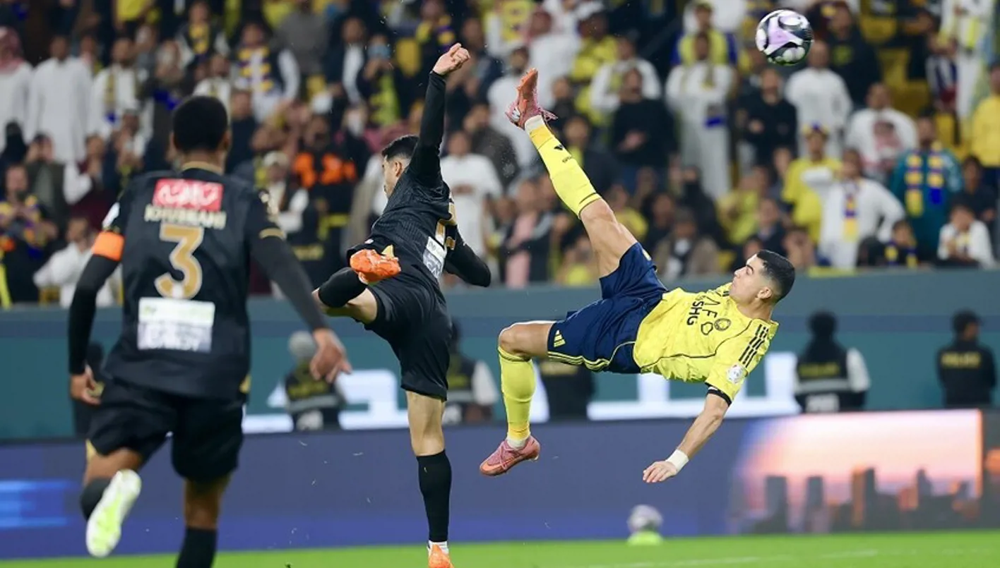 رونالدو وقع على الهدف الرابع للنصر في الدقيقة 90+6 عبر مقصّية مذهلة خطفت الأنفاس، وسط رقابة خانقة ووضعية معقدة كان من الممكن أن تتسبب له بإصابة، لكنه حول الكرة إلى لوحة فنية استقرت في الشباك.
