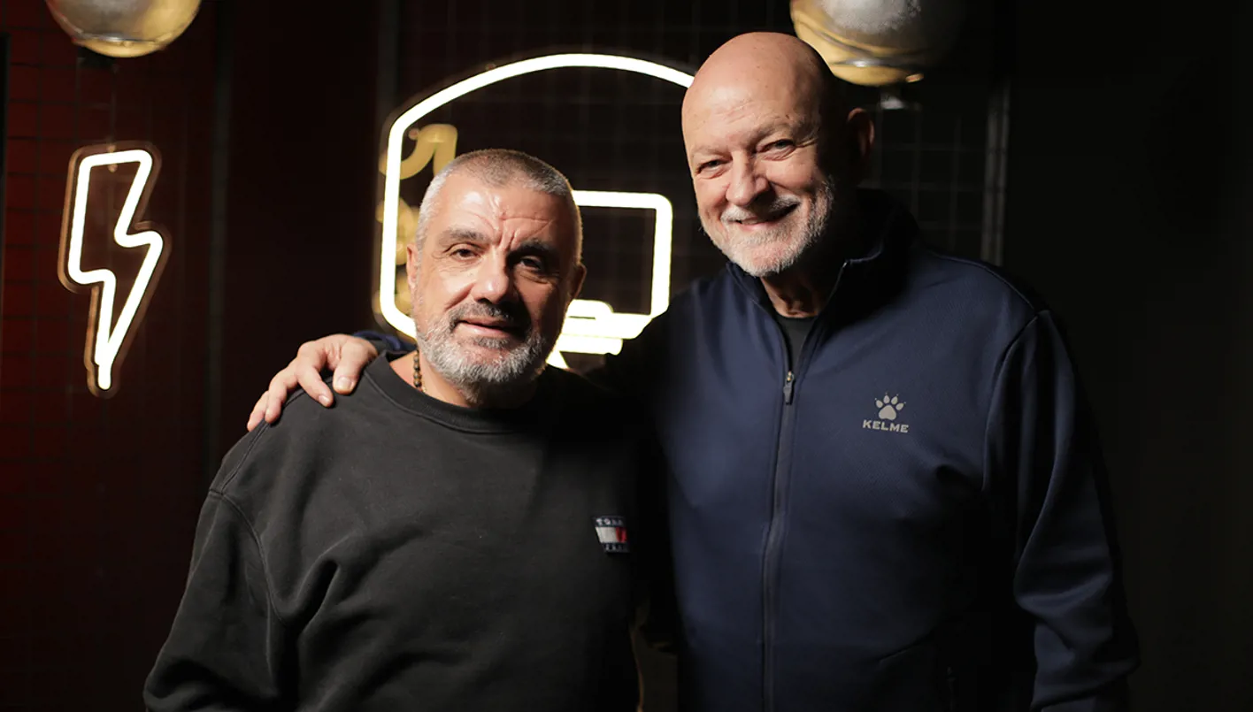 المدرب غسان سركيس والزميل نمر جبر خلال برنامج "Buzzer Beater". (النهار)