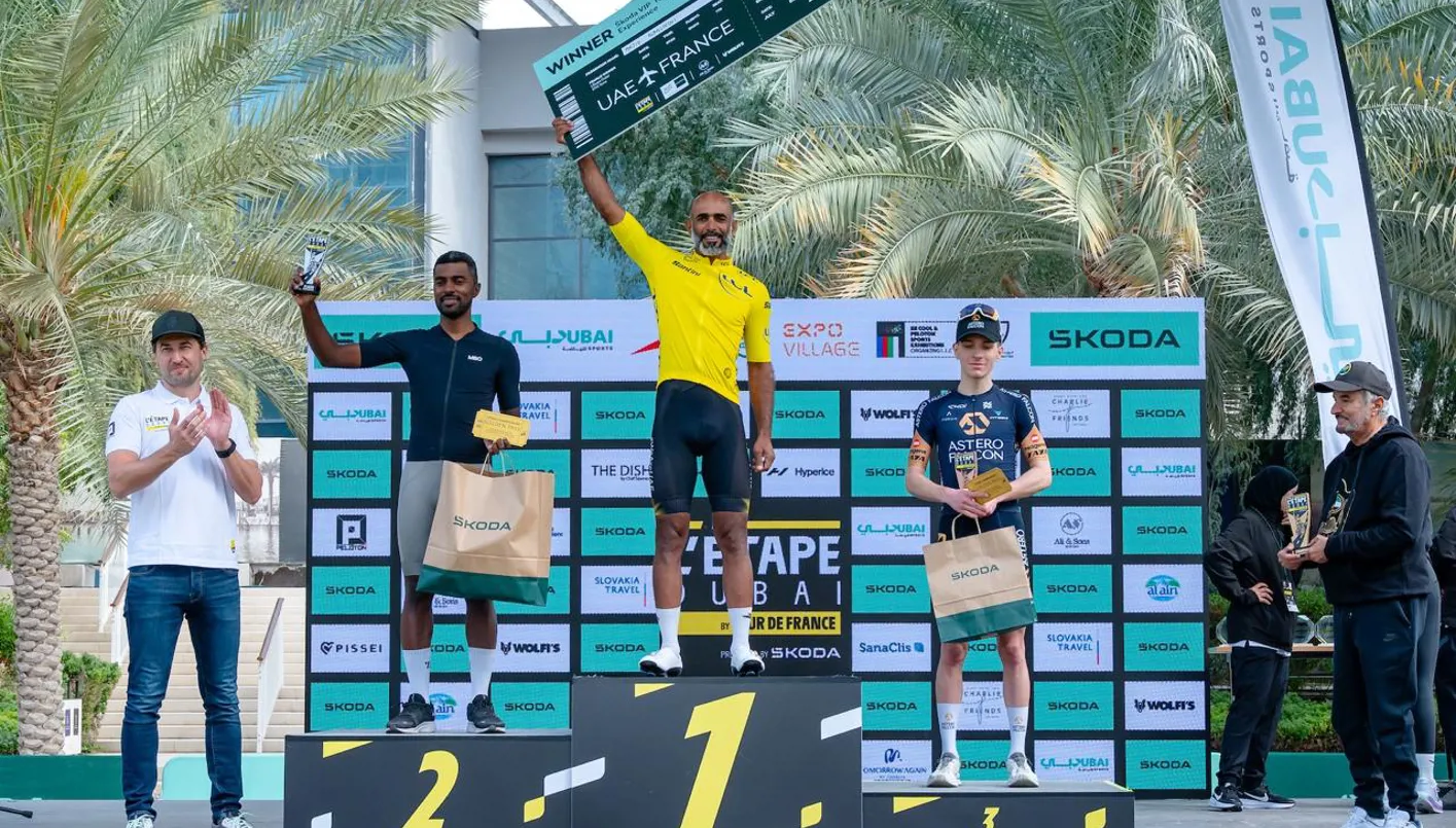 الإماراتي ماجد البلوشي وكارولينا كارلسون يتوّجان بلقب "لي تاب دبي للدرّاجات الهوائية"