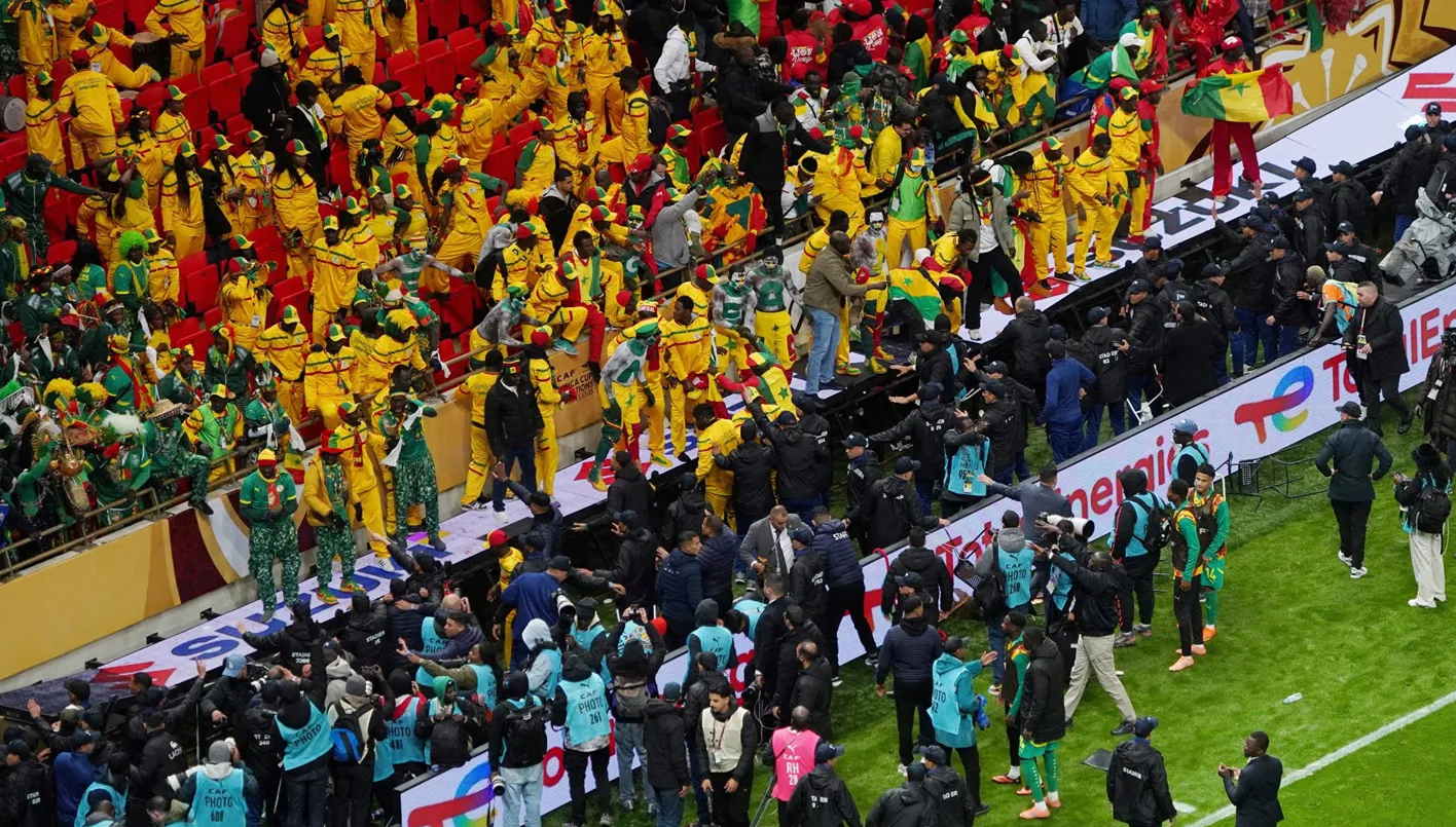 عقب احتساب ركلة جزاء للمغرب في الوقت بدلاً من الضائع من الشوط الثاني، بعد إلغاء هدف للسنغال، حاول مشجعو "أسود التيرانغا" اقتحام أرض الملعب لمدة تقارب 15 دقيقة، حتى خلال استعداد إبراهيم دياز لتسديد ركلة الجزاء التي أهدرها في النهاية. وفي الوقت الإضافي سجل باب غي هدف الفوز للسنغال من تسديدة صاروخية.