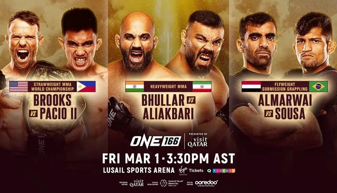 أعلنت بطولة "ون"، أكبر منظمة للفنون القتالية في العالم، ثلاثة نزالات لعرضها الأول من نوعه في قطر، "ون 166: قطر"، المقرّر يوم الجمعة في 1 آذار (مارس) 2024 في صالة لوسيل الرياضية.