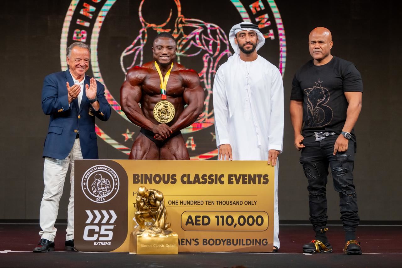 وتوج الشيخ عبدالله بن حمد بن سيف الشرقي رئيس اتحاد الامارات لبناء الاجسام واللياقة البدنية، وعلي عمر مدير إدارة الفعاليات الرياضية بمجلس دبي الرياضي، ورئيس اللجنة المنظمة للبطولة انيس بينوس الفائزين بحضور رئيس الاتحاد الدولي لبناء الاجسام واللياقة البدنية الدكتور روفائيل سانتوغا وعدد من القيادات الرياضية.