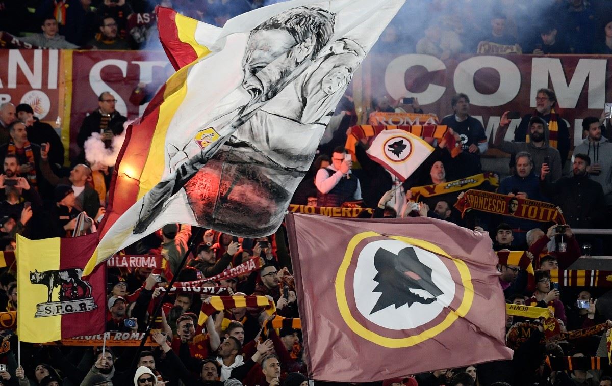 جمهور روما سعيد بتأهل فريقه إلى نصف نهائي الدوري الأوروبي. (أ ف ب)