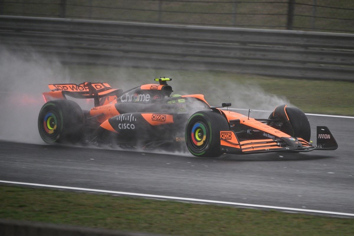 لاندو نوريس يتفوّق تحت المطر. (أ ف ب)
