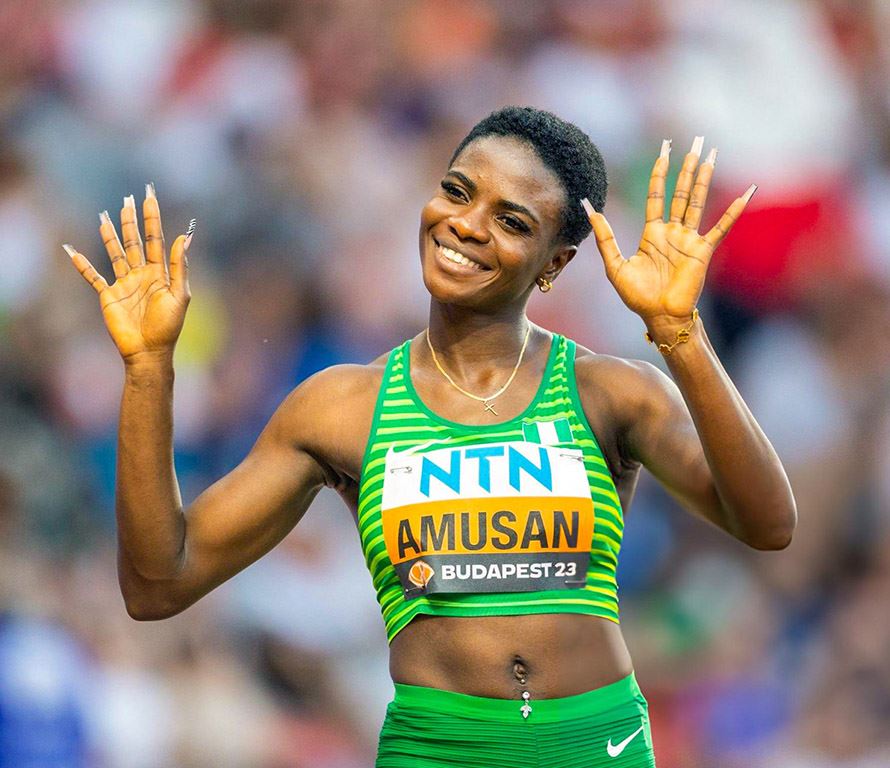 وسجلت أموسان الرقم القياسي العالمي في سباق 100 متر حواجز خلال الدور نصف النهائي لتصفيات السباق في بطولة العالم 2022 وهي مرشحة بقوّة للفوز بالسباق في أولمبياد باريس الصيفي هذا العام.