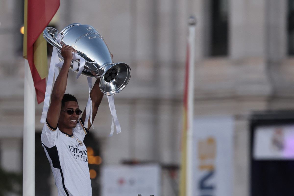 بيلينغهام يحتفل بالفوز بدوري أبطال أوروبا (أ ف ب)
