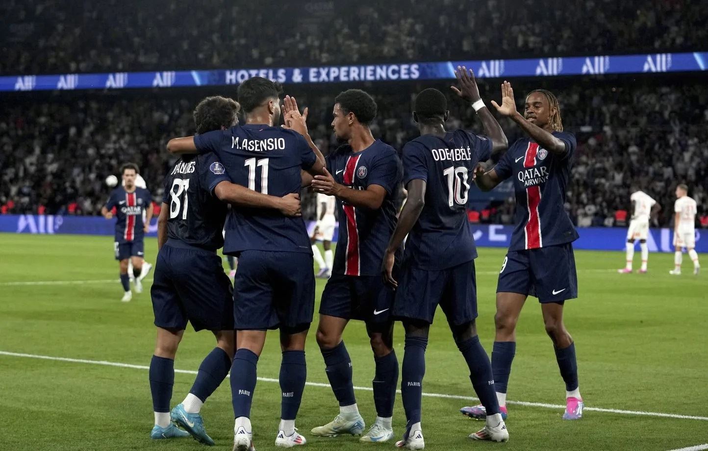 وتناوب على تسجيل أهداف باريس سان جرمان كل من برادلي باركولا (4 و53) والإسباني ماركو أسنسيو (24) والمغربي أشرف حكيمي (58) ووارن زاير ايمري (60) والكوري الجنوبي لي كانغ-اين (82).