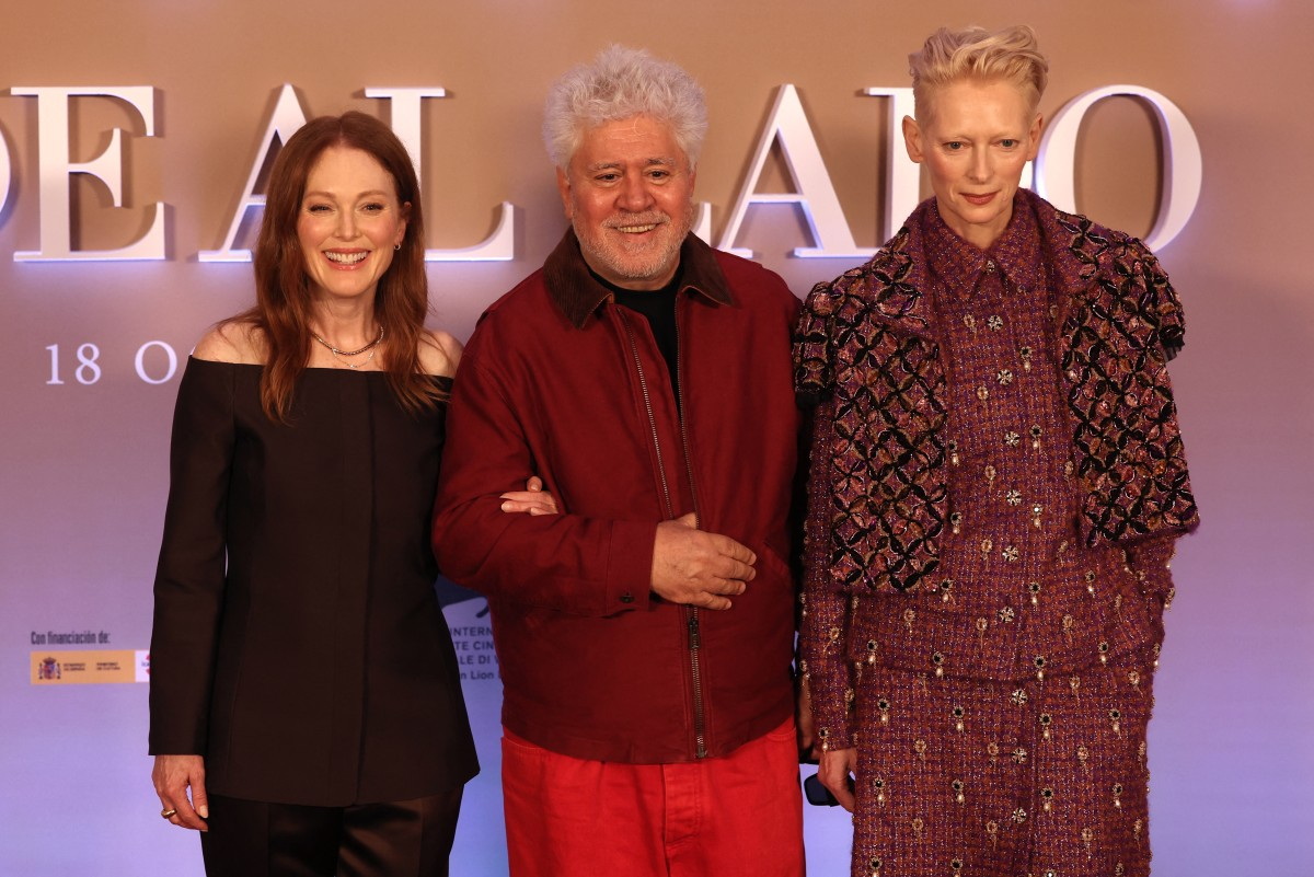 جوليان مور، تيلدا سوينتون، ألمودوفار، عرض فيلم، مدريد ( أ.ف.ب)