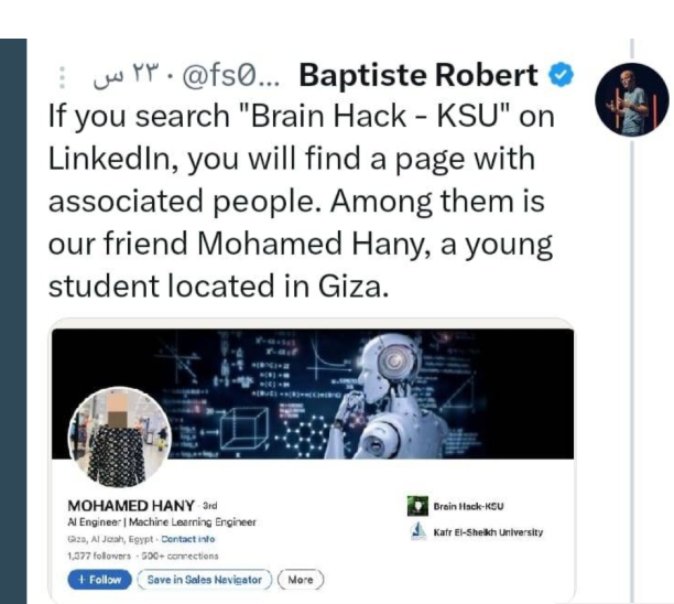 وتصاعدت الأحداث عندما نشر التقرير الذي أشار إلى أن التحقيقات الأولية كشفت تورط طالب مصري متخصص في الذكاء الاصطناعي بكلية الذكاء الاصطناعي بكفر الشيخ يُدعى محمد هاني.