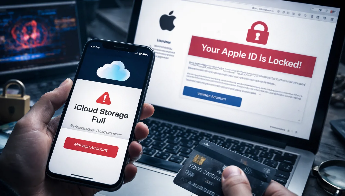 تشهد رسائل الاحتيال المرتبطة بخدمات التخزين السحابي انتشاراً متزايداً، مستهدفةً مستخدمي iCloud عبر انتحال صفة شركة "أبل"، وتعتمد هذه العمليات على إرسال بريدٍ إلكتروني يوهم المتلقي بأن مساحة التخزين الخاصة به قد امتلأت أو قاربت النفاد، مع التحذير من فقدان الصور والملفات الشخصية إذا لم يتخذ إجراءً سريعاً.